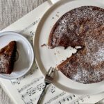 - Den Kuchen mit Puderzucker bestäuben und mit Schlagsahne anrichten.