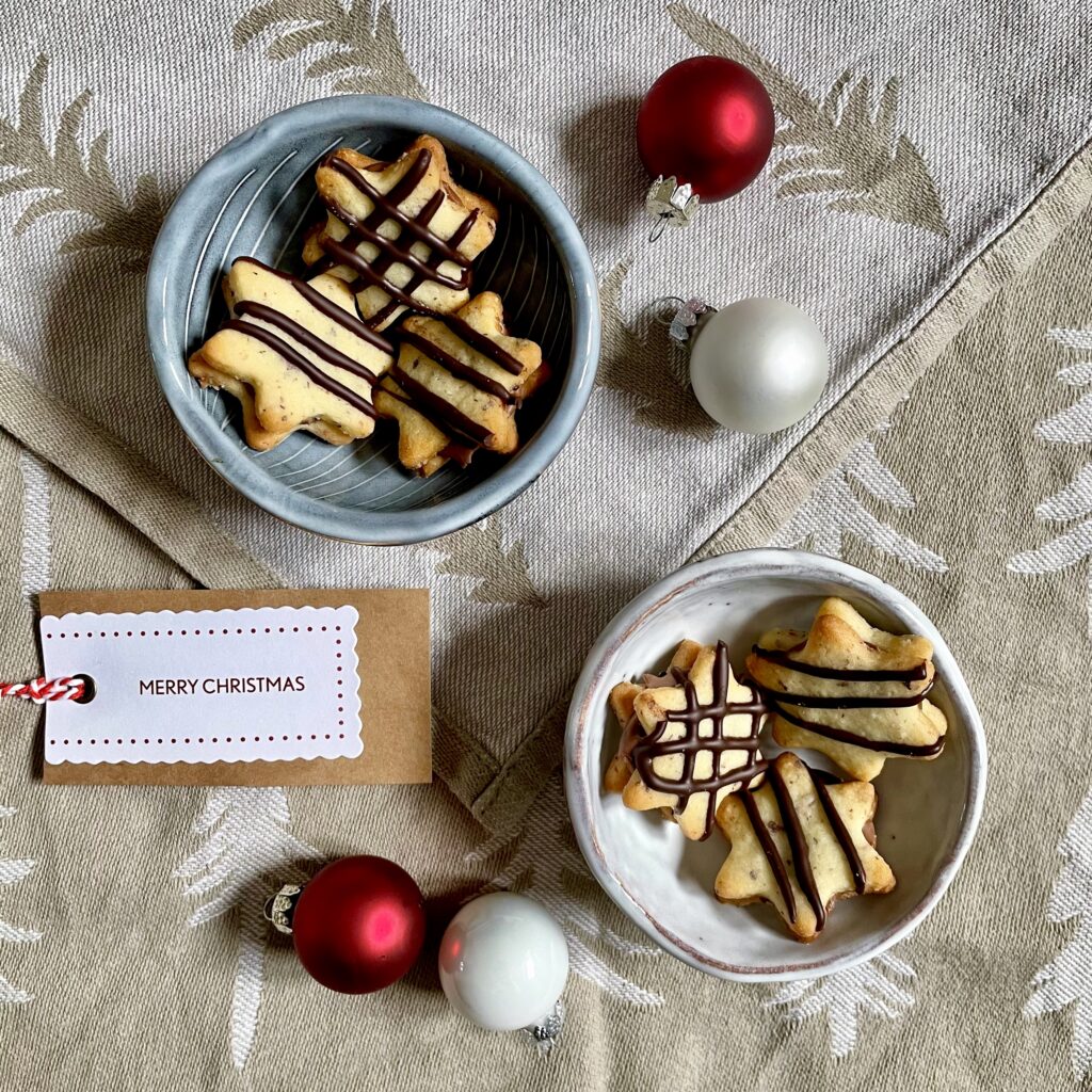 Statt Marmelade habe ich nussige Mürbeteigsterne mit Nougat gefüllt und mit Schokolade dekoriert. Die Zubereitung ist simpel und die Kombi mit Nüssen und Schokolade schmeckt einfach wunderbar. ⭐️